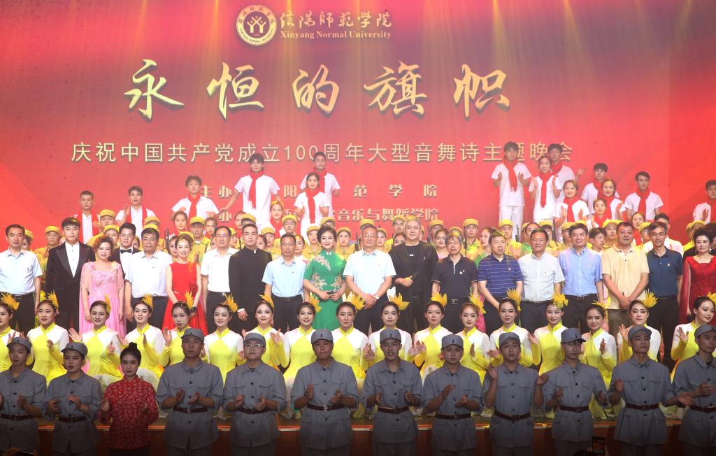 红旗如画,展现百年光辉历程,岁月如歌,颂唱百年丰功伟绩。6月17日,由学校主办,音乐与舞蹈学院承办的“永恒的旗帜”庆祝中国共产党成立100周年大型音舞诗主题晚会在艺术楼音乐厅隆重上演。校党书记王文鹏,校长李俊,校党委副书记郜火星,校党委副书记、工会主席王文臣,副校长刘彦明、陈登报、余本海、王金云、胡海华与bat365官网师生代表600余人一同观看晚会。晚会采取“现场+云直播”模式,直播间期,在线观看人数达3.5万人次。