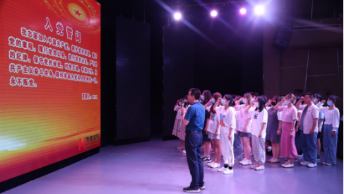6月15日下午,传媒学院分党委在社科楼演播厅举行2021年上半年新党员入党宣誓大会。传媒学院分党委书记王振海、副书记胡波、副院长刘新建、党委委员范少华及各学生党支部书记、学生党员代表、2021年上半年新发展预备党员、入党积极分子参加大会。大会由胡波主持。