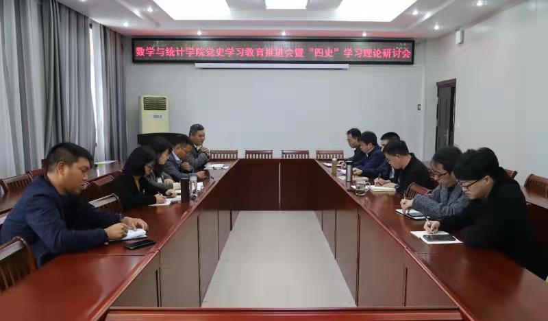 10月19日下午,数学与统计学院在数学楼315会议室召开党史学习教育推进会暨“四史”学习理论研讨会。学院领导班子、各支部书记和支部委员参加会议。