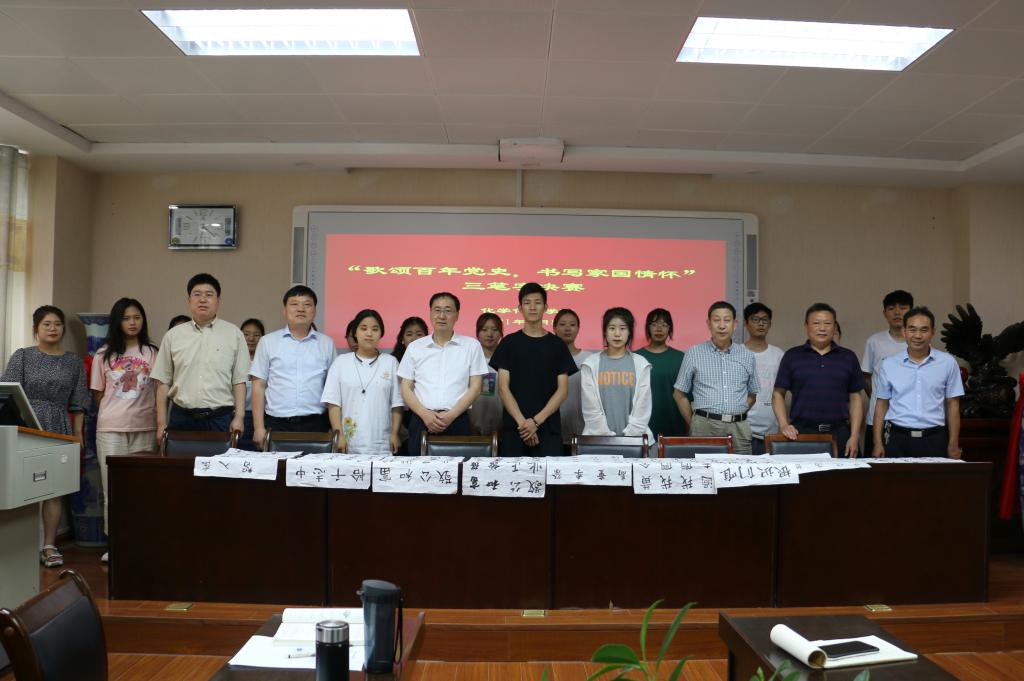 6月8日,化学化工学院党史学习教育系列活动之“歌颂百年党史 书写家国情怀”三笔字大赛决赛在化学实验楼407会议室举行。副校长刘彦明到场指导。
