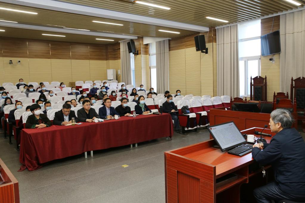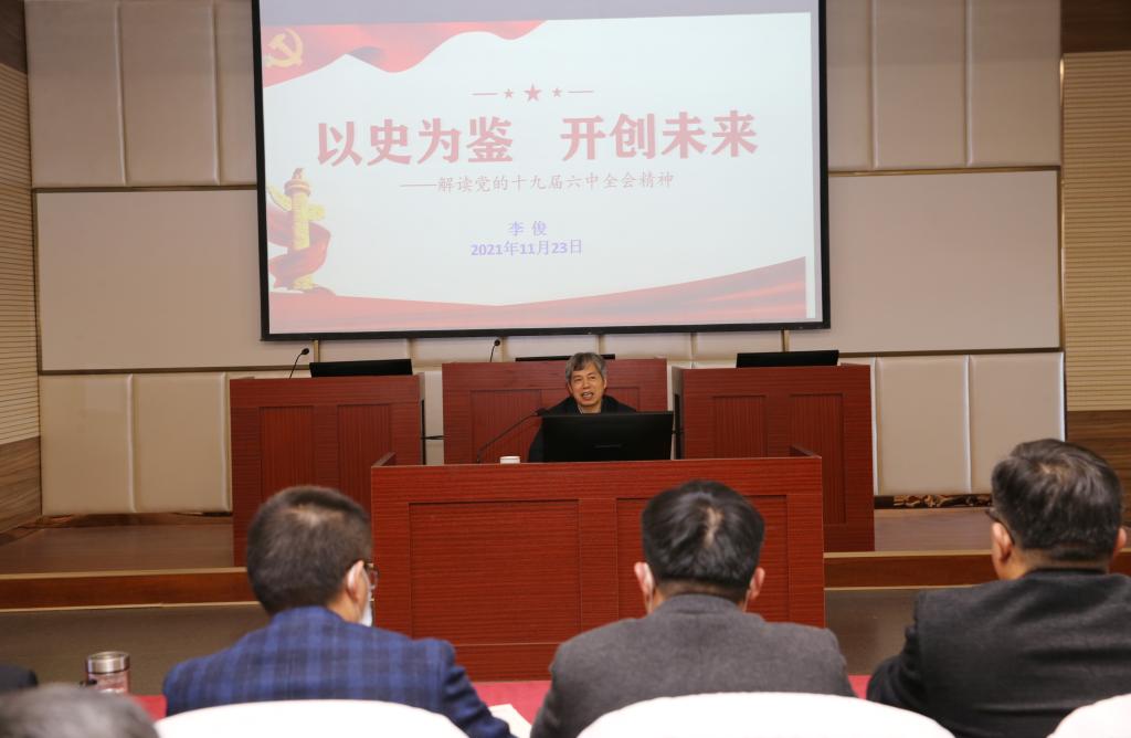 为深入推进党的十九届六中全会精神进教材、进课堂、进头脑,11月23日下午,校长李俊在社会科学楼作了题为《以史为鉴,开创未来——解读党的十九届六中全会精神》的专题辅导报告。法学与社会学学院和数学与统计学院全体教师参加,报告会由法学与社会学学院负责人主持。