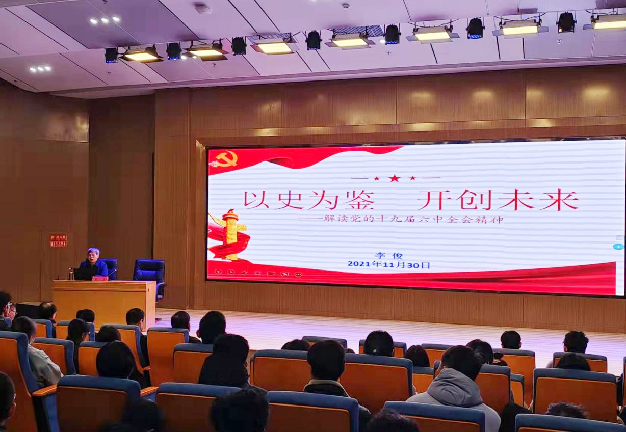 11月30日,河南省高校思政课教指委主任委员、校长李俊在淮河校区图书馆一号报告厅以《以史为鉴,开创未来——解读党的十九届六中全会精神》为题作专题辅导报告。淮河校区党工委、管委会、书院全体人员和学生代表聆听了报告。