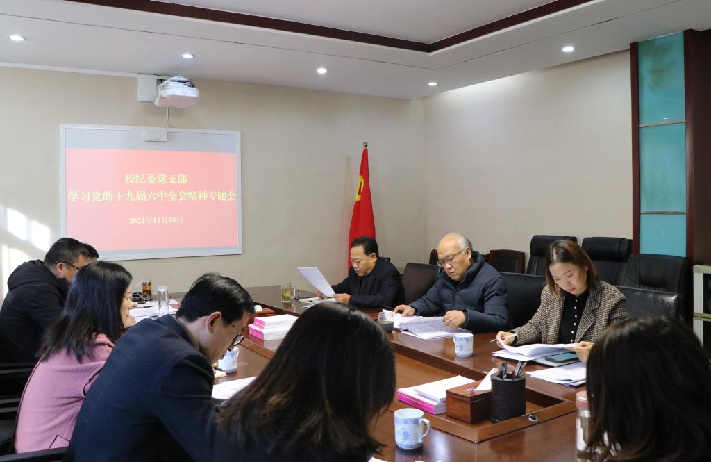 11月18日,校纪委党支部召开专题会议,传达学习党的十九届六中全会精神。校纪委书记、监察专员龚立新参加会议。校纪委党支部集体学习《中共中央关于党的百年奋斗重大成就和历史经验的决议》《习近平关于< 中共中央关于党的百年奋斗重大成就和历史经验的决议>的说明》,并交流了学习体会。会议由校纪委常务副书记刘党英主持。