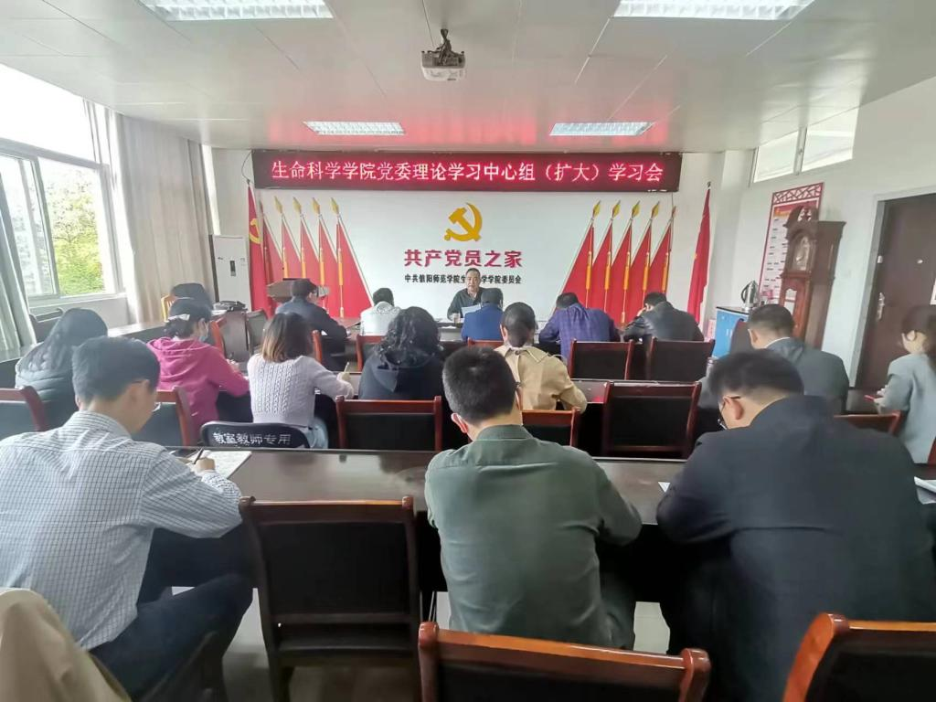 4月19日上午,生命科学学院党委召开党委理论学习中心组(扩大)学习会,生命科学学院党委中心组成员、党支部书记、系主任和全体科级干部参加会议。会议由生命科学学院党委书记李刚主持。