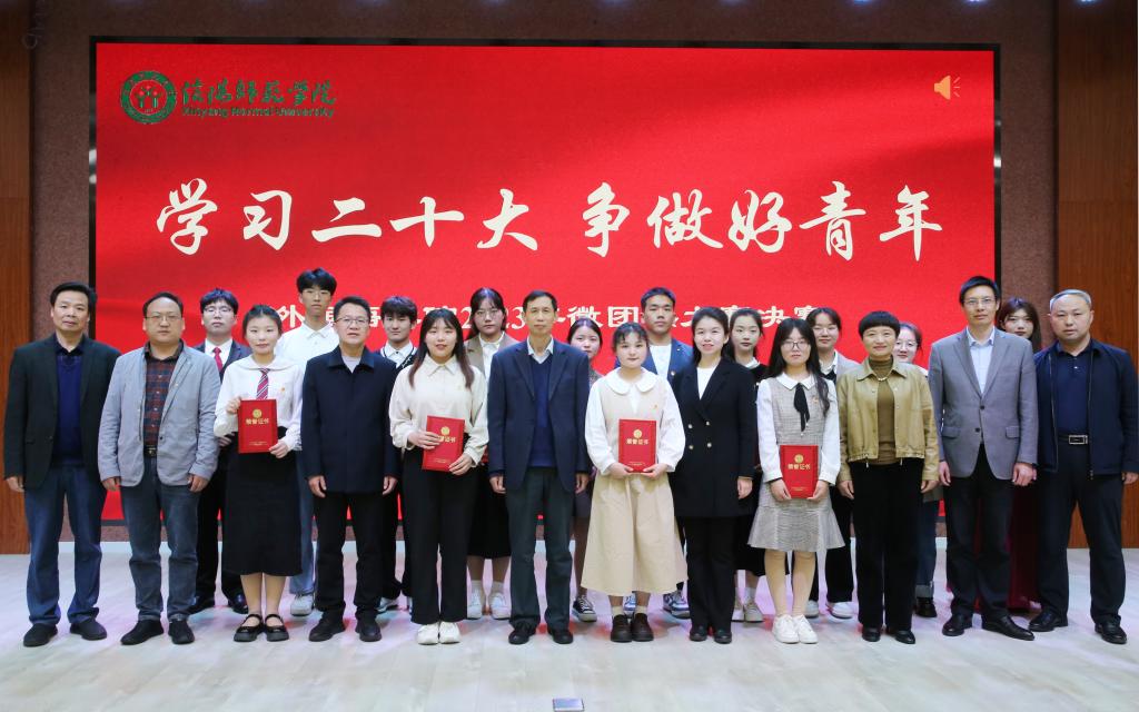 外国语学院负责人介绍了此次微团课大赛的举办情况、学院“五育+比赛”协同育人学生工作品牌的创建情况,以及学院开设“五育大讲堂”的初衷和愿景,勉励广大同学立志做有理想、敢担当、能吃苦、肯奋斗的新时代好青年。随后,与会领导为此次微团课大赛获奖选手颁发获奖证书并合影留念。