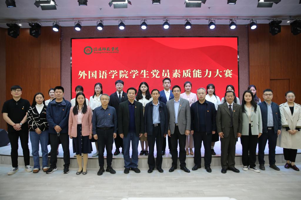 为深入开展学习贯彻习近平新时代中国特色社会主义思想主题教育,4月26日下午,外国语学院学生党员素质能力大赛决赛于人文楼报告厅举办。校党委副书记、工会主席岳宗德出席活动,组织部、宣传部、学生工作部、校团委、研究生工作部、文学院相关同志参加活动。学院各党支部书记、全体师生党员与学生骨干代表观摩了活动。