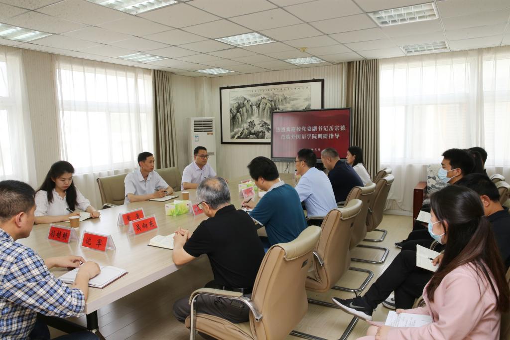 5月17日,校党委副书记、工会主席岳宗德深入外国语学院、体育学院调研思想政治工作。与学院领导班子成员、辅导员班主任代表、师生代表座谈交流。党委宣传部和校团委有关同志参加调研。