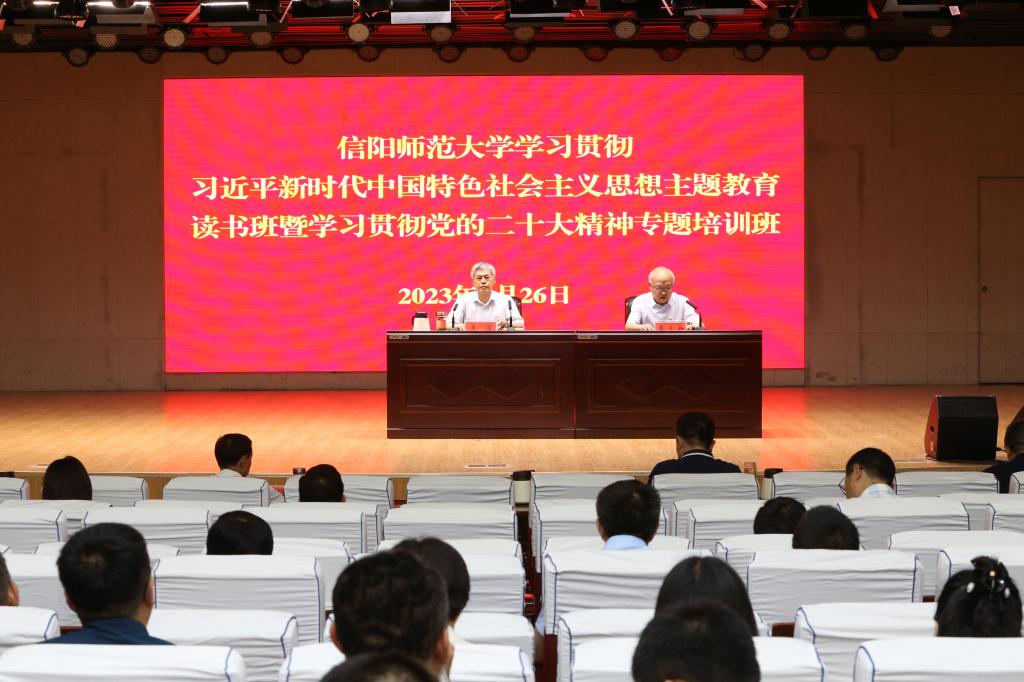 6月26日,学校在理科楼报告厅举办主题教育读书班暨党的二十大精神专题培训班。校党委副书记、校长李俊作首场专题辅导报告。校党委副书记、工会主席岳宗德,副校长余本海、江玉安、井强山,校纪委书记、监察专员李荣胜及全体副处级以上干部参加会议。校党委副书记龚立新主持会议。