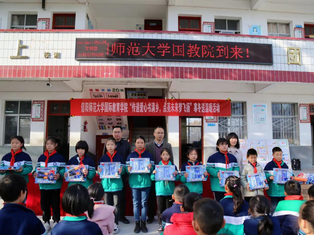 12月12日上午,国际教育学院师生党员赴浉河区董家河乡楼畈小学开展“传递爱心书满乡,点亮未来梦飞扬”寒冬送温暖主题活动。