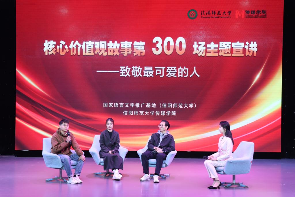 12月20日,第300场“核心价值观故事——致敬最可爱的人”主题宣讲会在社科楼演播厅举行。副校长、国家语言文字推广基地(bat365在线中国登录入口)副主任王娟出席宣讲会,国家语言文字推广基地、传媒学院相关负责同志,传媒学院全体教师、学生党员、入党积极分子等200余人共同聆听了宣讲会。